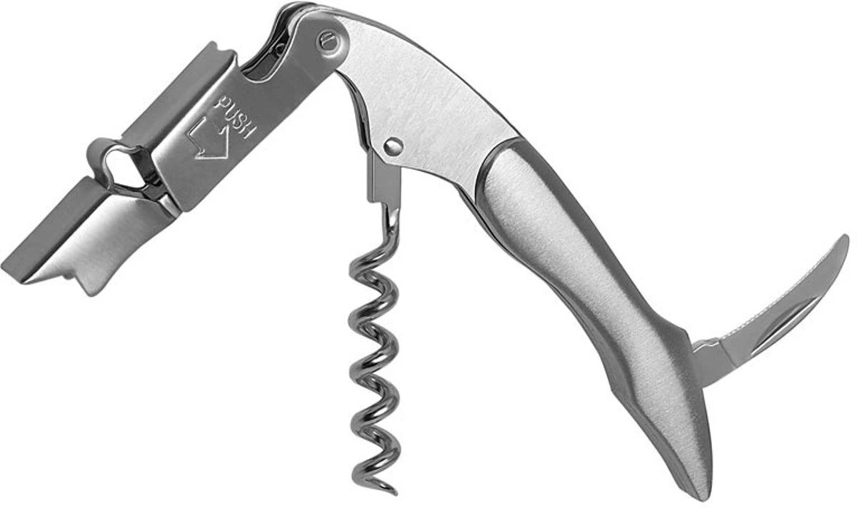 De Cookai kurkentrekker is volledig gemaakt van roestvrij staal. De opener is voorzien van een kurkentrekkerspiraal, een twee-staps hefboom, een capsulesnijder en een flesopener.