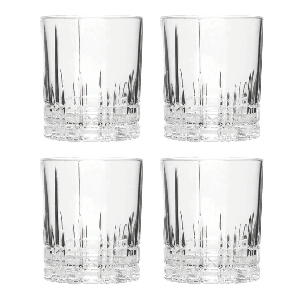 Set van 4 Spiegelau Perfect Serve D.O.F. glazen. De van kristalglas gemaakte glazen hebben een inhoud van 370 ml. De glazen hebben een diameter van 8,5 cm en zijn 10 cm hoog. Gebruik de glazen voor het serveren van dranken ‘on the rocks’ of het serveren van cocktails.